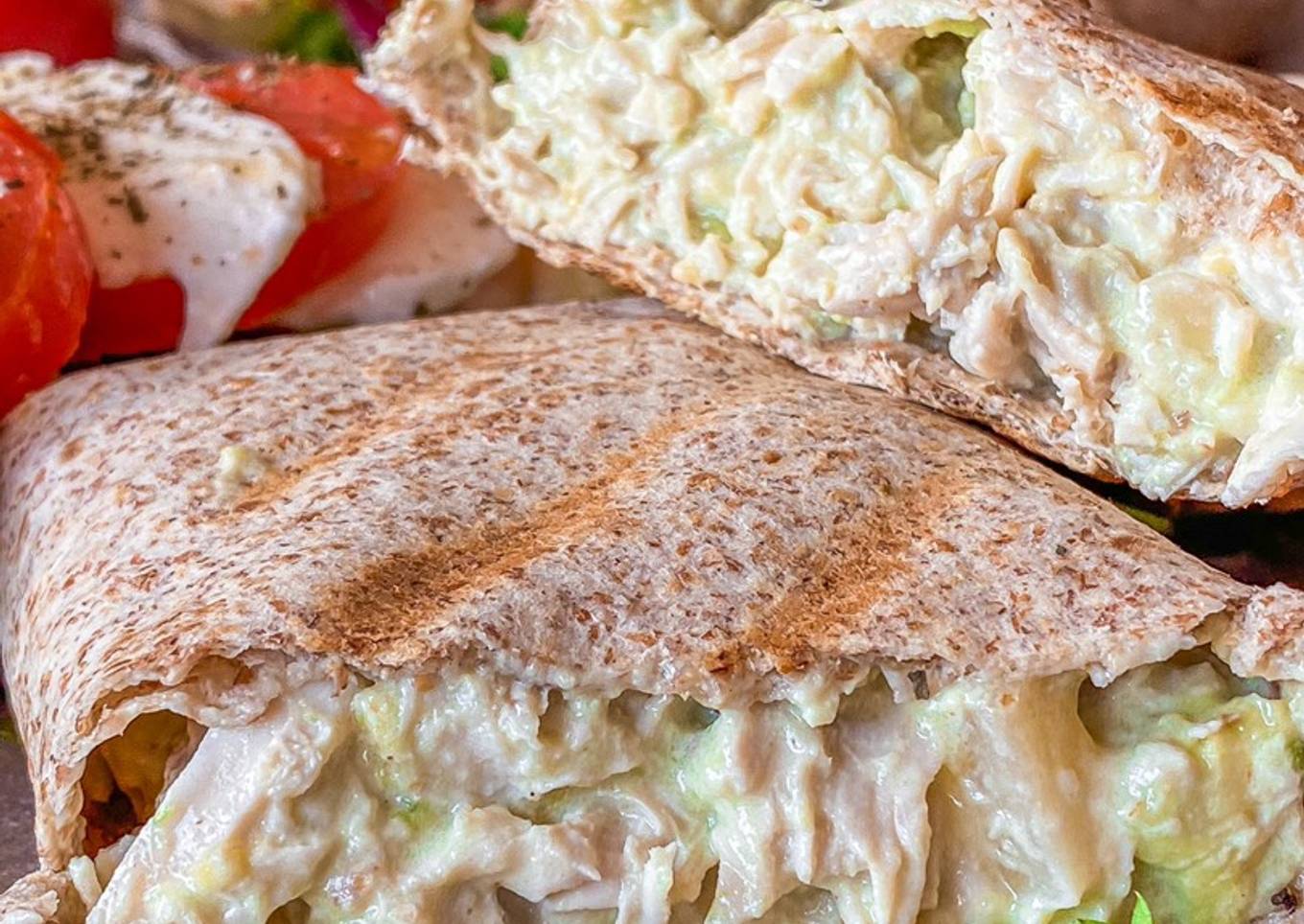 - Rellenamos las tortillas de trigo, las cerramos, tostamos un poco a la plancha y ¡listos para disfrutar! Yo lo he acompañado con una ensalada de tomate y mozzarella y comilana de 10!