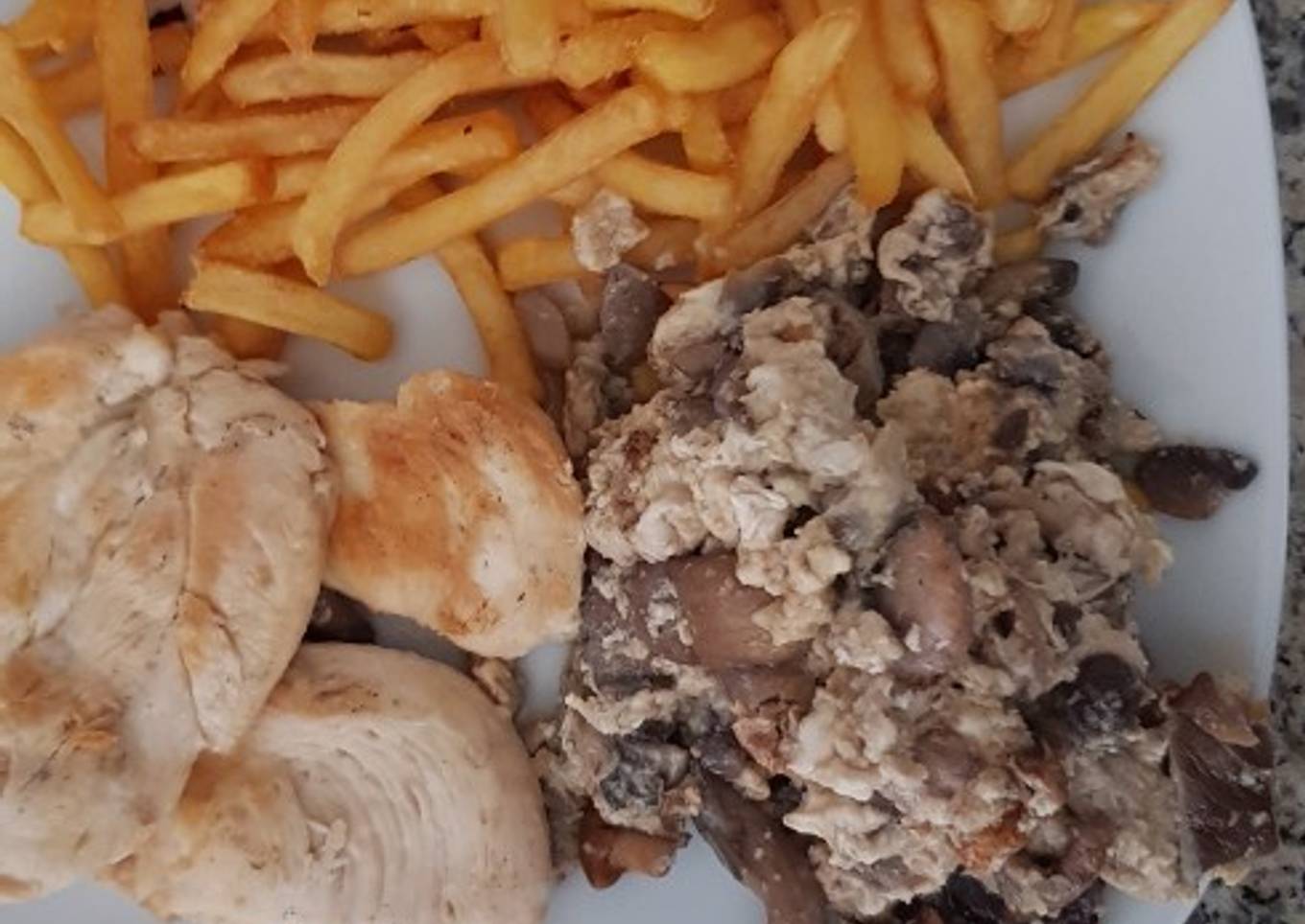 Pollo con champiñones revueltos