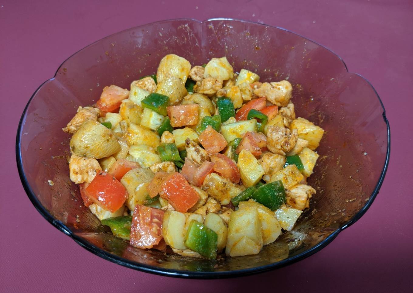 - Añadimos el pollo a la ensaladera, lo mezclamos bien con los demás ingredientes y listo, a disfrutar del manjar!