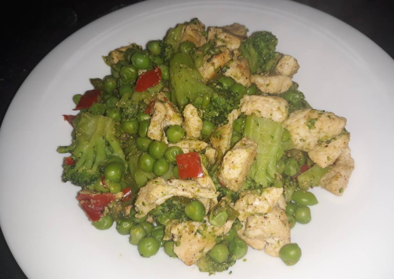 - Por último escurrir bien las verduras y añadirla a la sartén junto con el pollo, ponerle un poco de sal y pimienta y ya estaría.