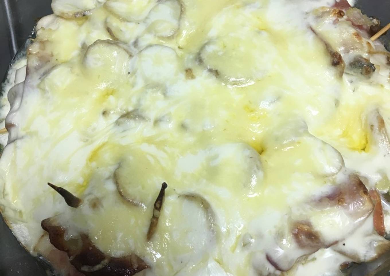 Rollitos de pollo carbonara con salsa de queso